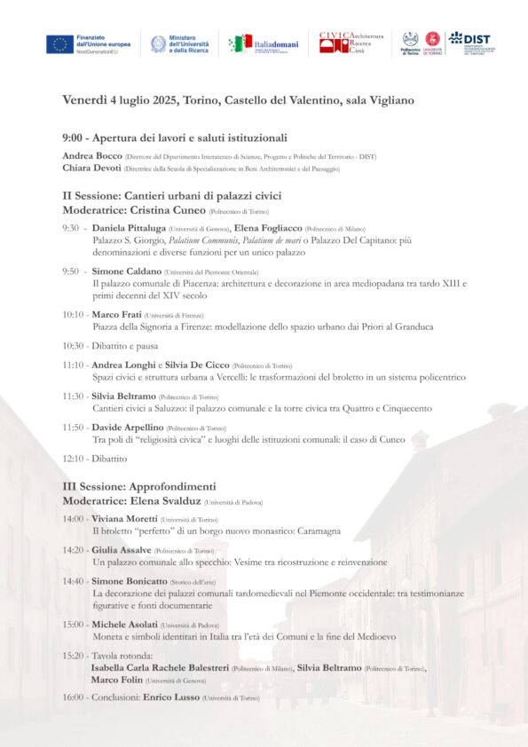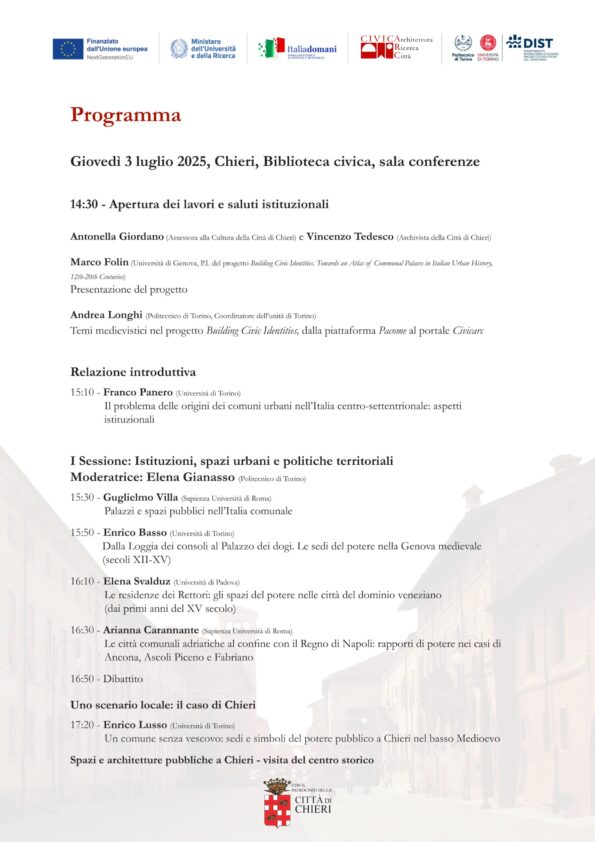 3-4 luglio 2025, Chieri-Torino Luoghi del potere nell’Italia comunale: istituzioni, spazi urbani e cantieri (secoli XIII-XV) scarica qui la locandina e il programma
