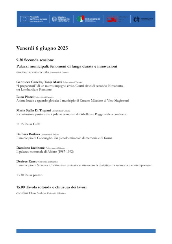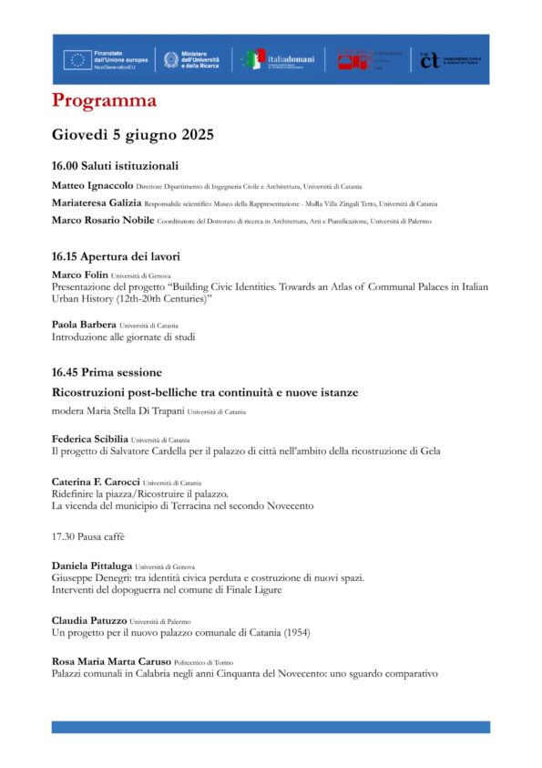 5-6 giugno 2025, Catania Palazzi di città nel secondo Novecento: casi studio in un orizzonte comparativo scarica qui la locandina e il programma
