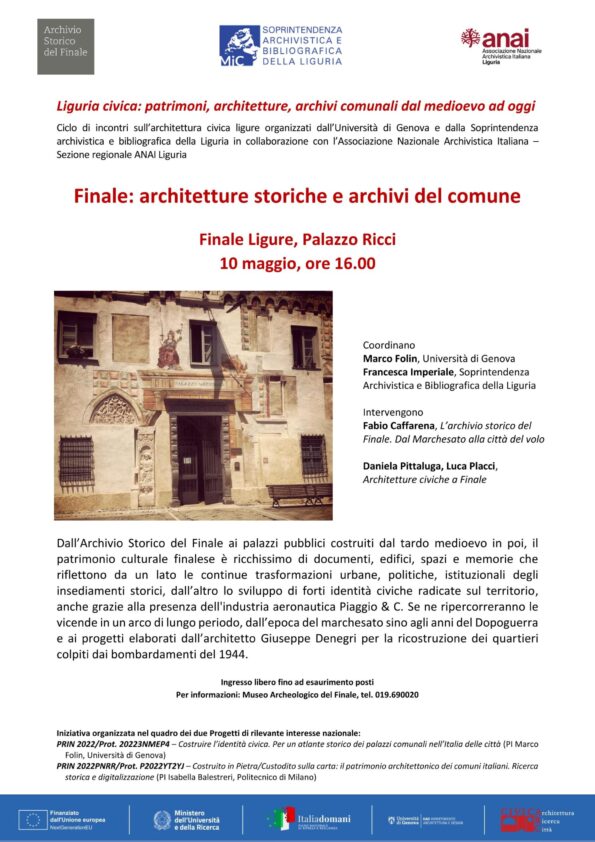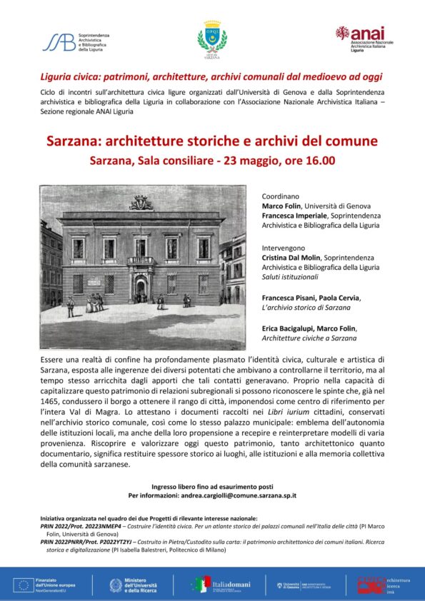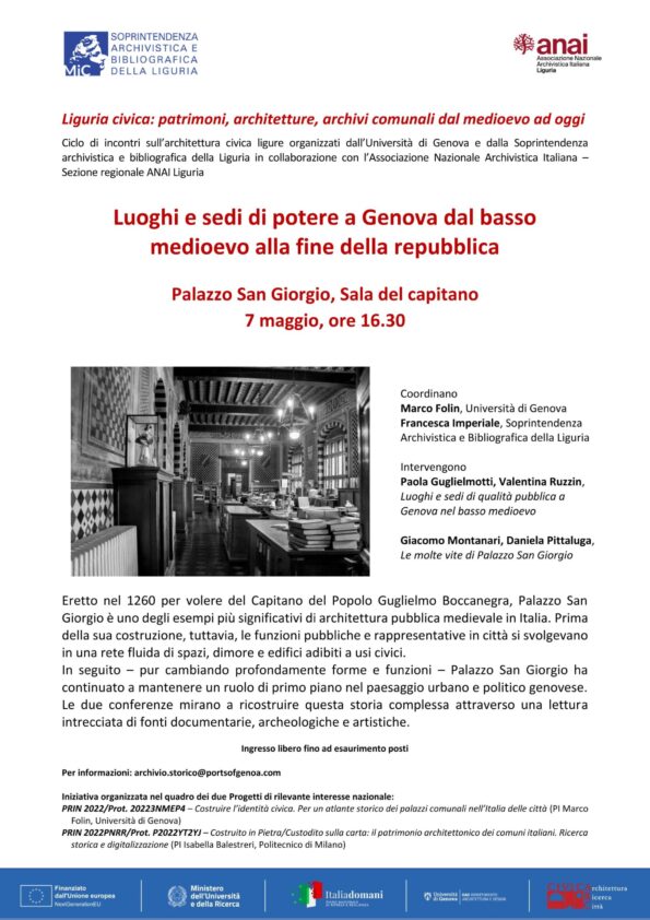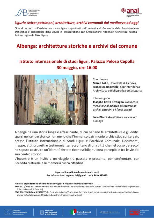 aprile – giugno 2025, Liguria Liguria civica: patrimoni, architetture, archivi comunali dal medioevo ad oggi. scarica qui la locandina e il calendario del ciclo di incontri